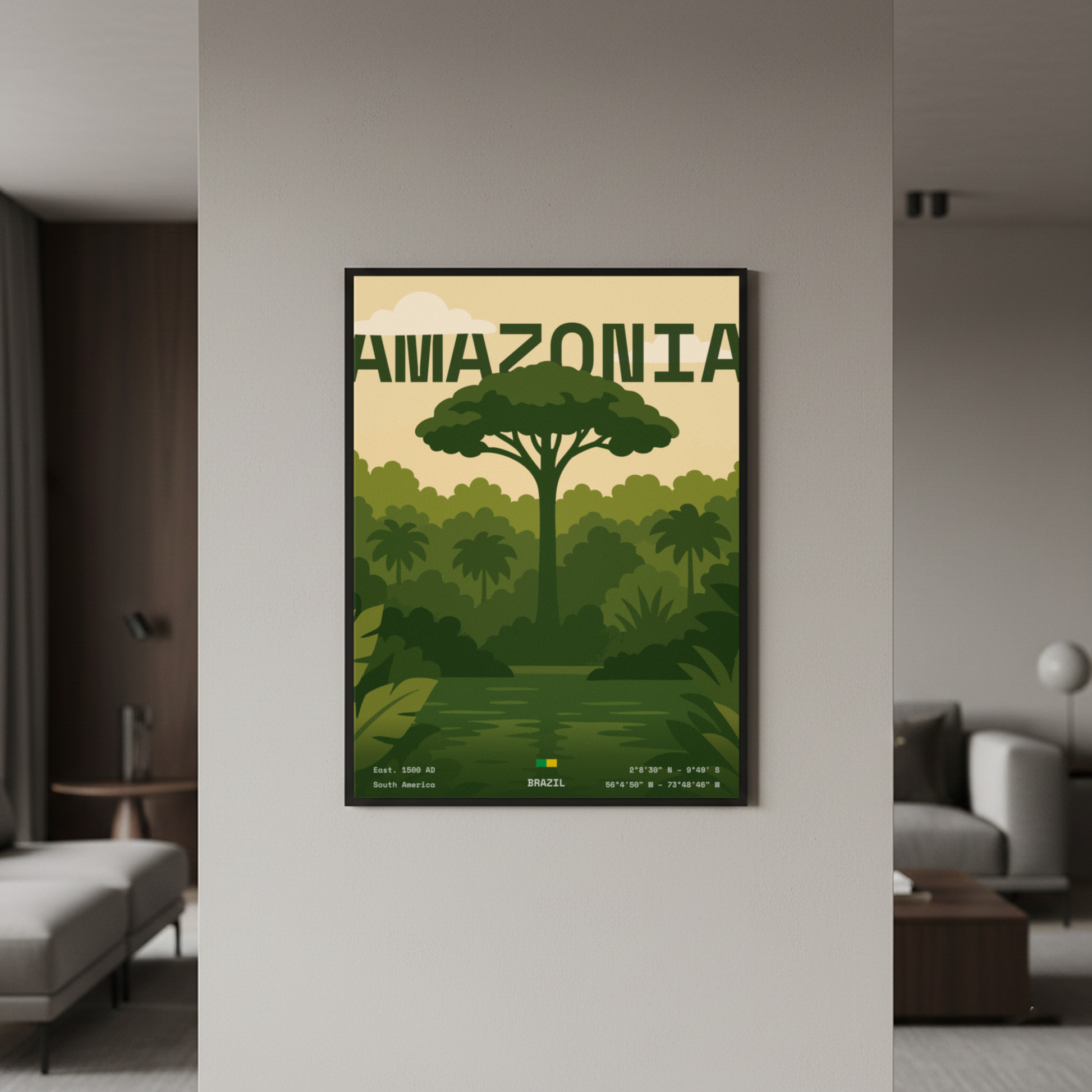 Bring the spirit of the Amazon into your space with this stunning minimalist piece. Inspired by the beauty and mystery of the world’s largest rainforest, this artwork adds a natural yet modern touch to any room. Clean lines, earthy tones, and timeless elegance — perfect for living rooms, bedrooms, or offices looking for a statement piece that connects with nature.